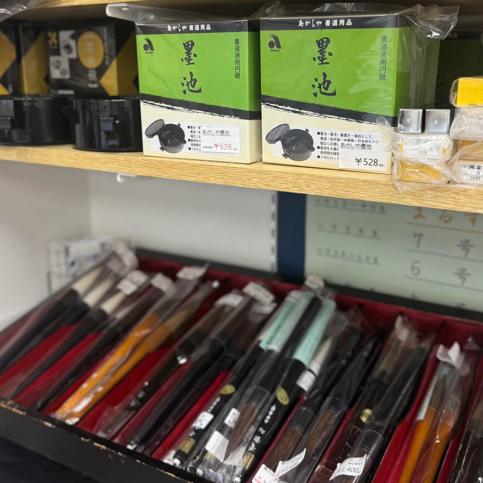 書初用品の店舗販売について 2025/11/26(水) 書初め用品は本店舗(館山)にもございます お近くであればお買い忘れても揃いますので 店舗にてお待ちしております ■書初め用筆 ■墨池 ■書初め用筒 ■書初め用下敷き ■書初め用紙 ★筆の名入れは店舗では受付ておりませんのでご了承ください